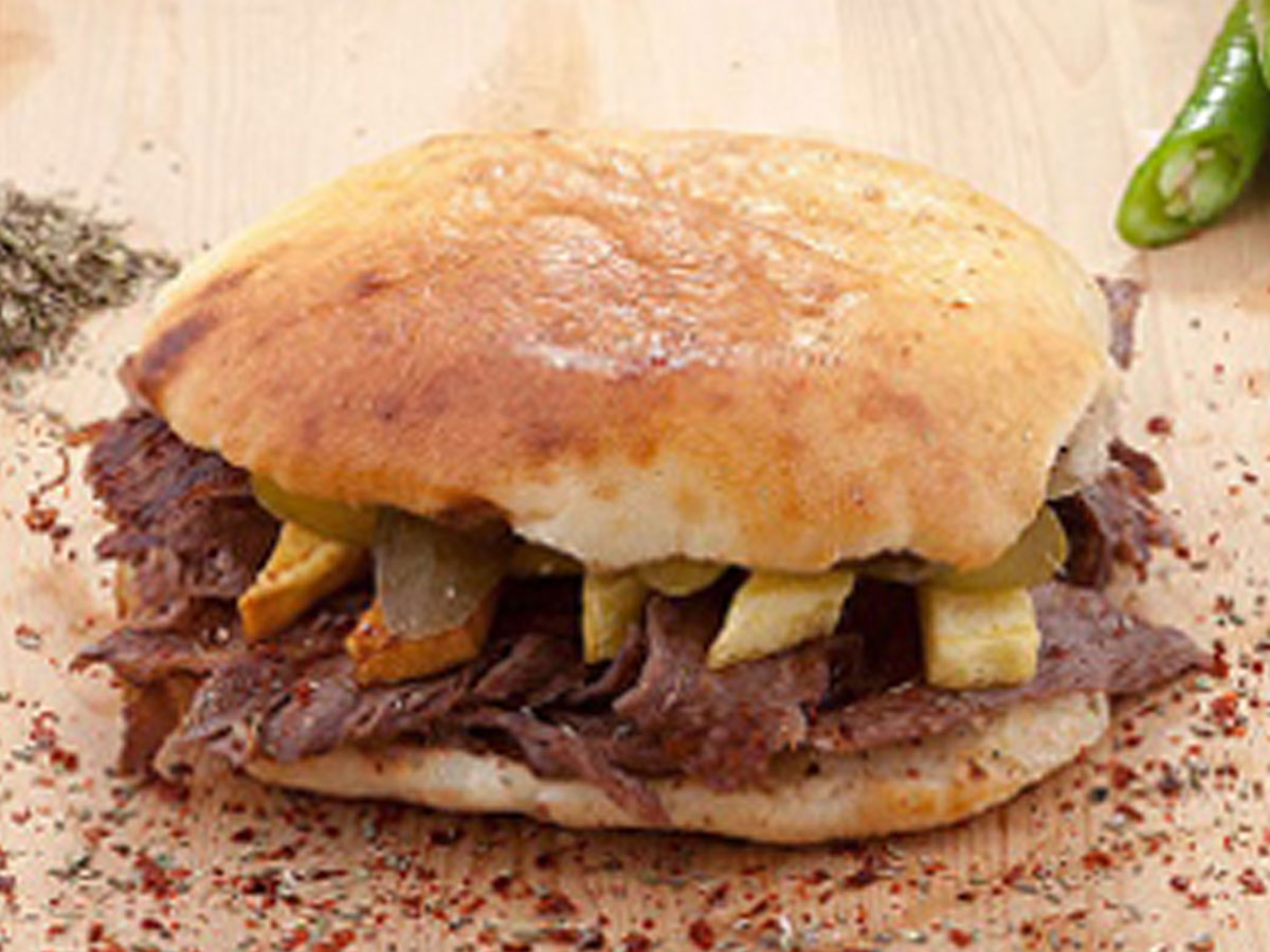 150 Gr. Tabakta yaprak et döner, salata ve turşu ile.